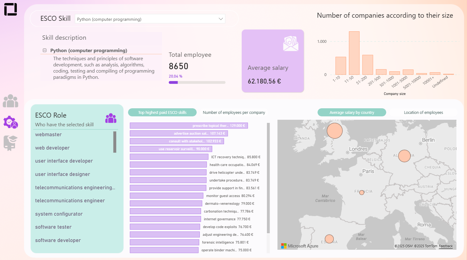 ETHAN currently works with job offers from Spain, France, Germany and the United Kingdom. It also integrates courses offered worldwide. This lets you connect what the market asks for with concrete training options, and compare signals across countries without losing consistency thanks to ESCO.